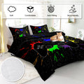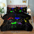 Black Video Game Comforter For Girls Boys Red Blue Green Purple Yellow Ink Game Controller Bedding Boy Bedroom Living Bed Decor With 1 Comforter 2 Pillow Shams