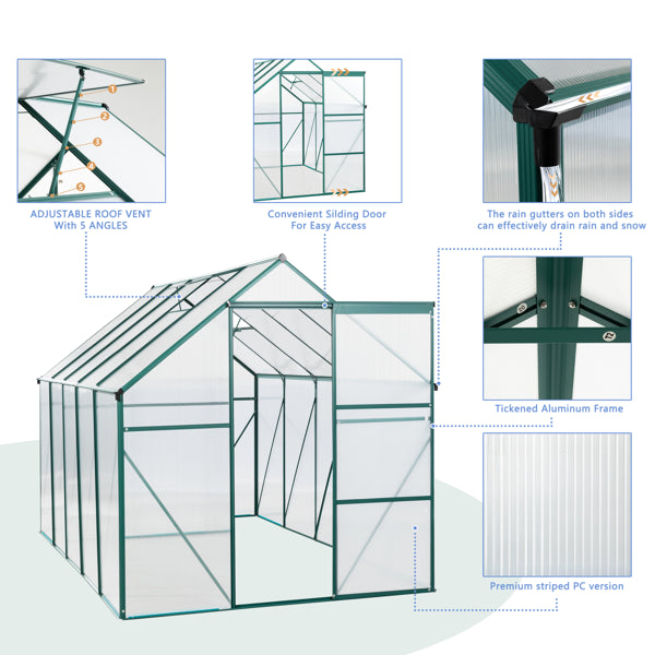 No Provide Self Pick-up 6X10FT Polycarbonate Greenhouse Raised Base And Anchor Aluminum Heavy Duty Walk-in Greenhouses For Outdoor Backyard In All Season